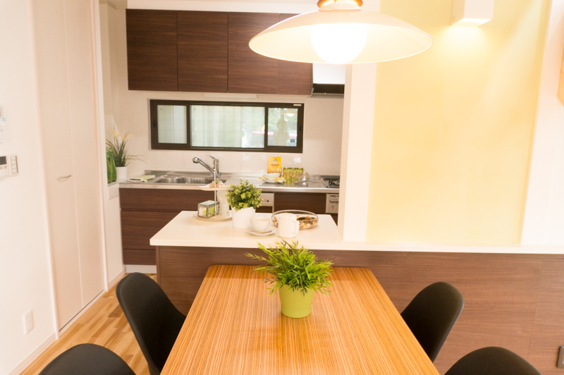 キッチンは半分オープン。半分独立型。片付けが苦手な方も安心してゲストを招くことが出来るのがポイントだそうです