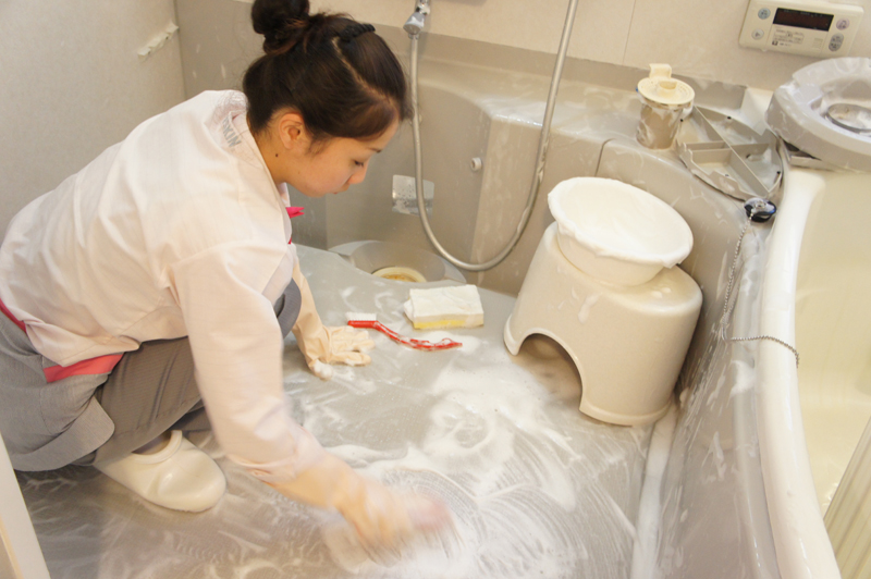 写真は浴室クリーニングの様子。
