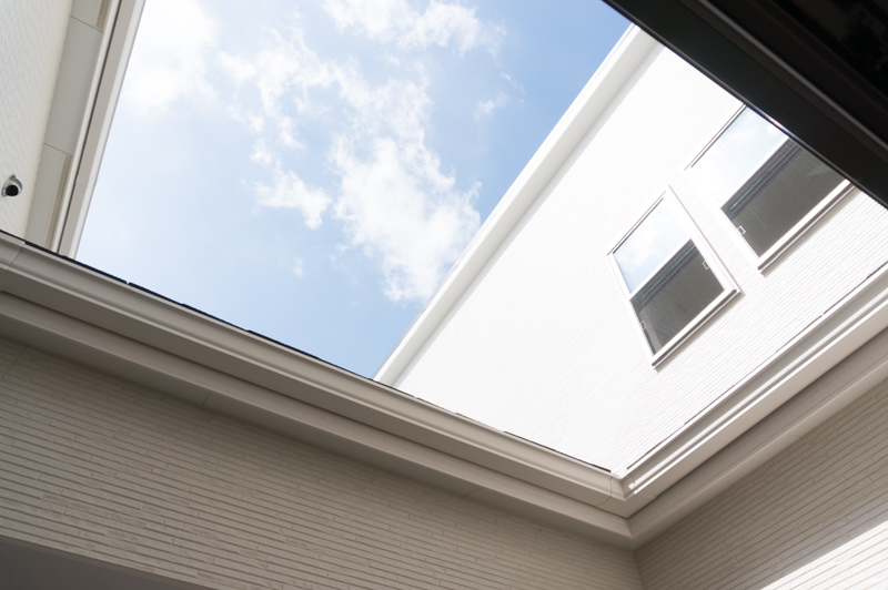 ●坪庭・芝のテラス、そしてダイニングの天窓