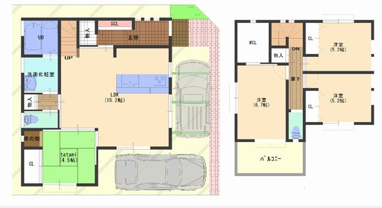 こちらも宅地面積146.58㎡(44.34坪)と広めです。