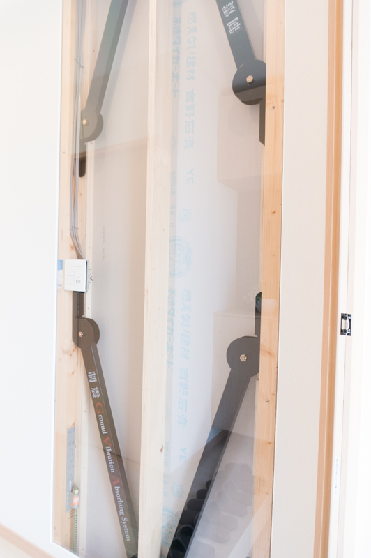 大地震から家を守ってくれる制震GVA(ジーバ)。玄関横に展示してあります。