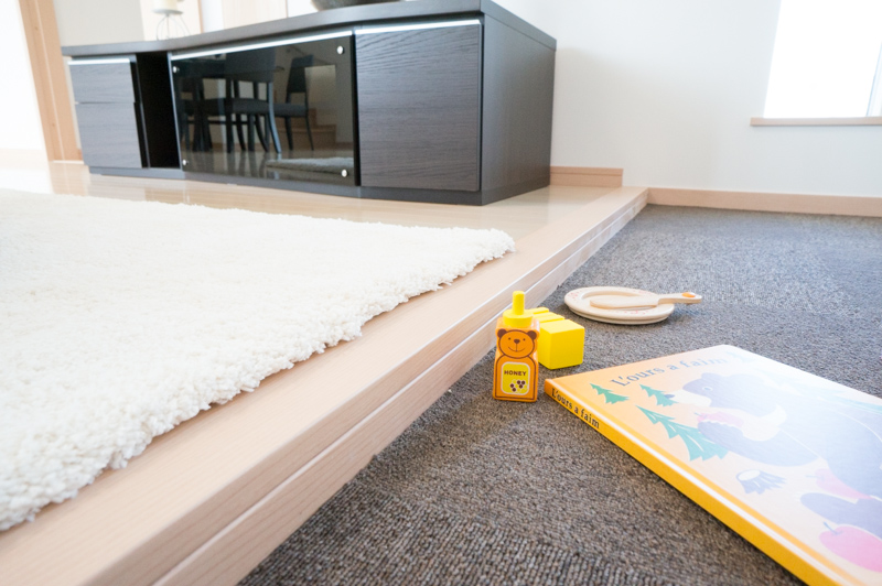けどこちらのキッズスペースは少し段差をもたせているので、おもちゃがリビング側にいきにくい!!