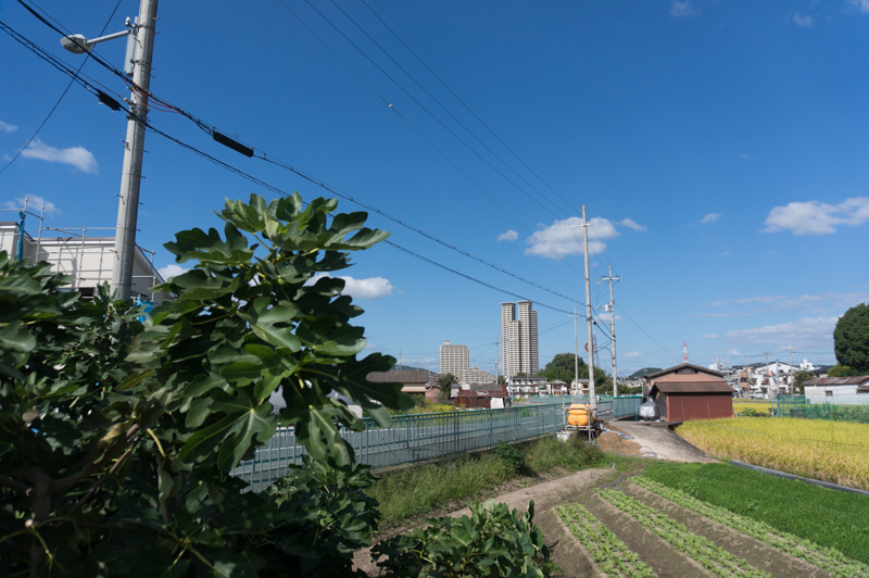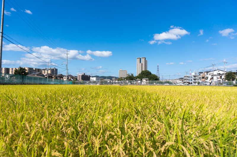船橋本町の田んぼ越しに望む樟葉駅方面