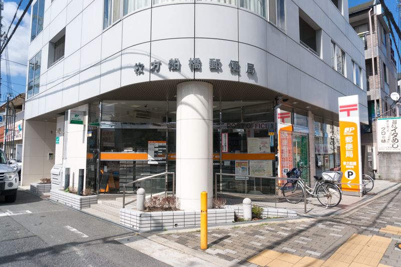 府道18号線の船橋北の交差点を西へ曲がるとすぐの場所。目印は交差点北西の角に『枚方船橋郵便局』があります。