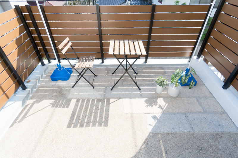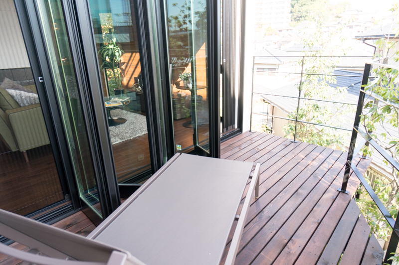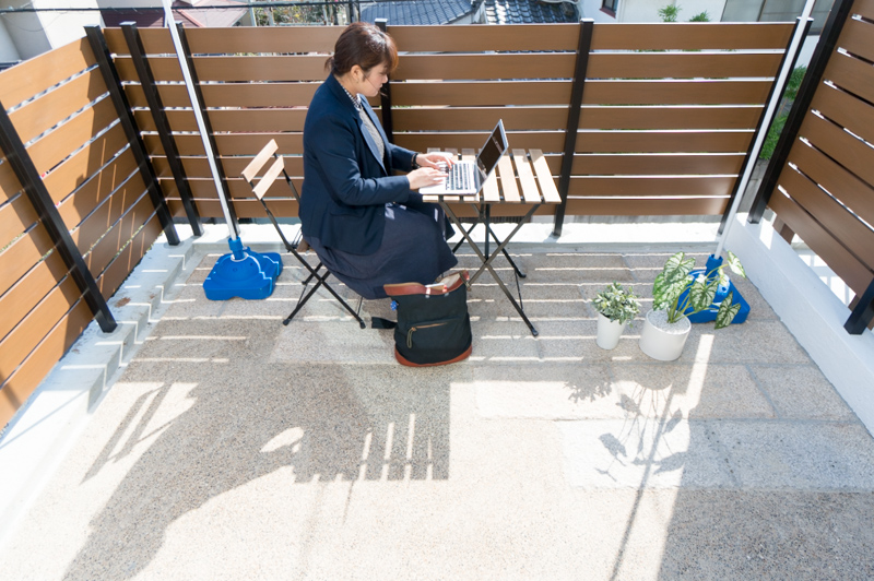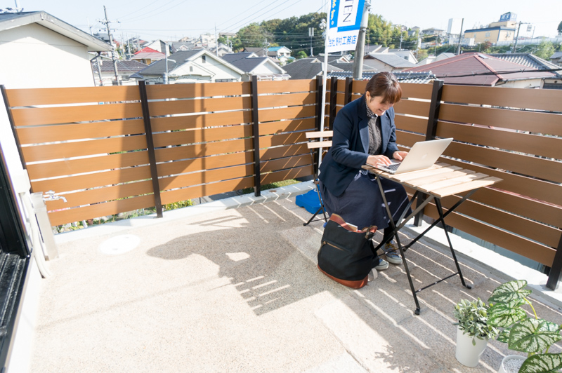 高台なので、ウッドデッキでくつろいでいても、家の前を通る人と目線が合いません!