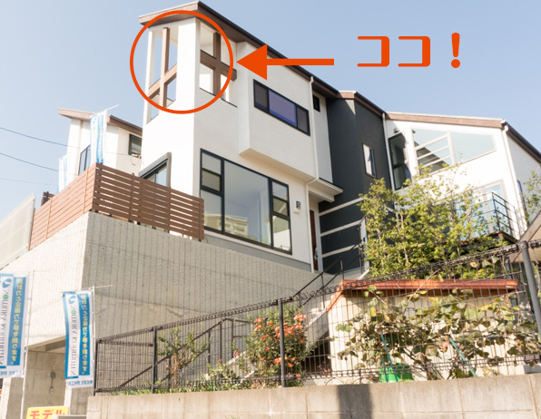 見上げると、この家の外観ポイントである部分。