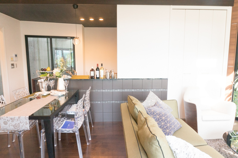 リビングとダイニングに対面するようになっていて、ダイニングからぐるっと裏側に回り込みます。