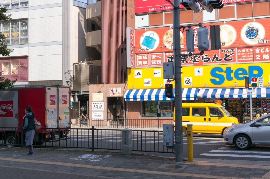 ルーズソックスの女子高生やカラオケ「恐竜の館」、「京たこ」というたこ焼き屋などが写ってます。現在StePがある場所あたりに見える花屋さん「五十鈴園」は現在は少し旧1号線よりの場所で営業されてますね。ついでに写真にはありませんが、ここから振り返って現在ダイコクドラッグがあるところにはニノミヤムセンがありました。