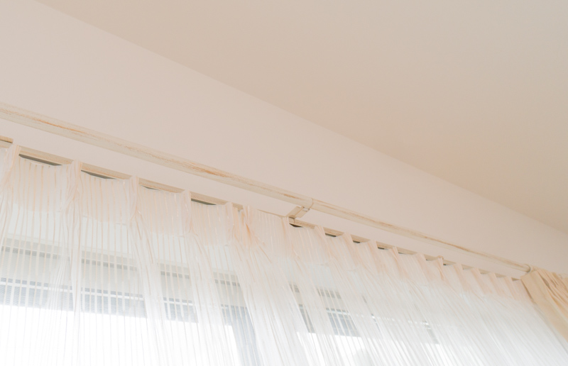 このカーテンレール、ちょっとカントリーかつレトロを感じさせる風合いになってます!(画像クリックで少し大きく表示できます)