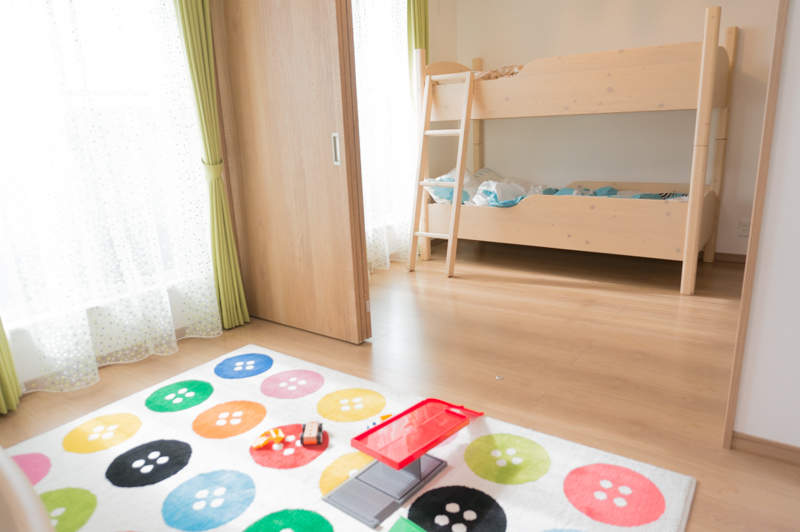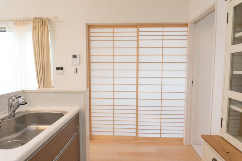 入り口はこの家に合う和風引き戸で仕切ることができるので、お昼寝している子どもをそっと寝かせておけます。