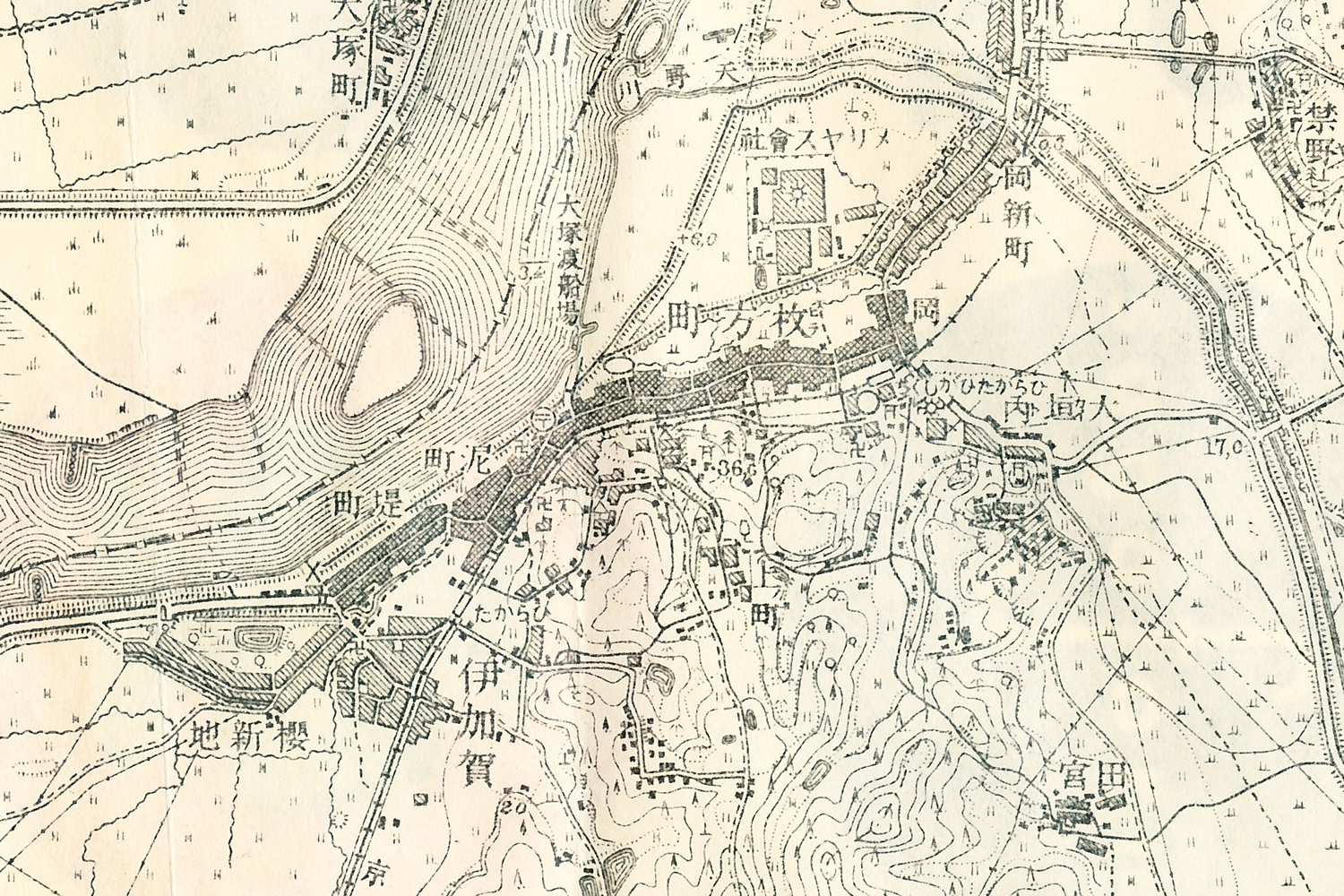1945年の枚方市、アメリカ製地図