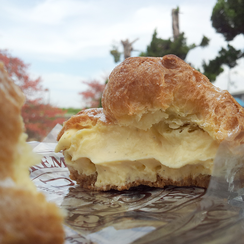 生地はややパンのようでしたが、マームベランダの時と違うパンっぽさ、クロワッサンっぽい感じ。なんというか、しっとりしている中にも確かな食感がある、そんなシュークリームでした。