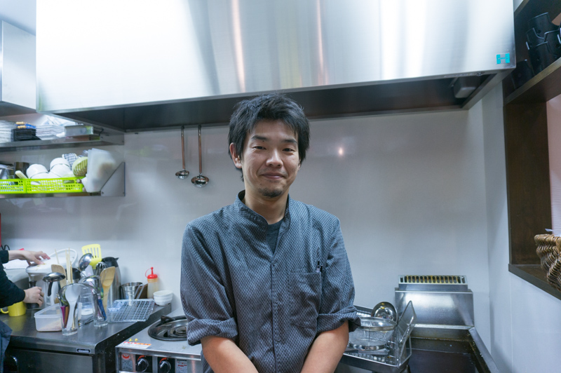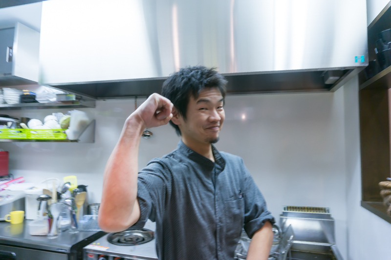 ひらつー取材班が頬張る様子を撮影してくれたのは、オーナーの川口さん。楠葉中町にある「まことの豆富 燈(あかり)」の店主さんでもあります。決めポーズ。