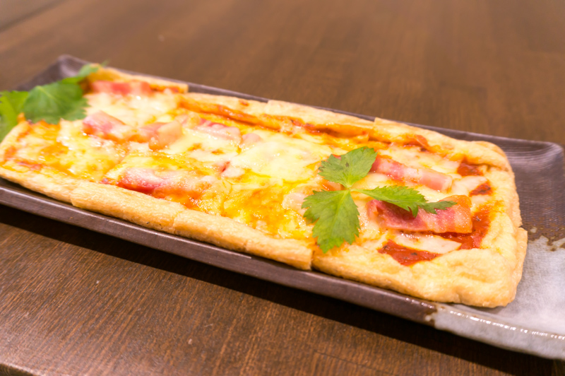 「毎朝手揚げしてもらっている肉厚の薄揚げを使ってピザにしました。手揚げの美味しさをしっかりと楽しめます」