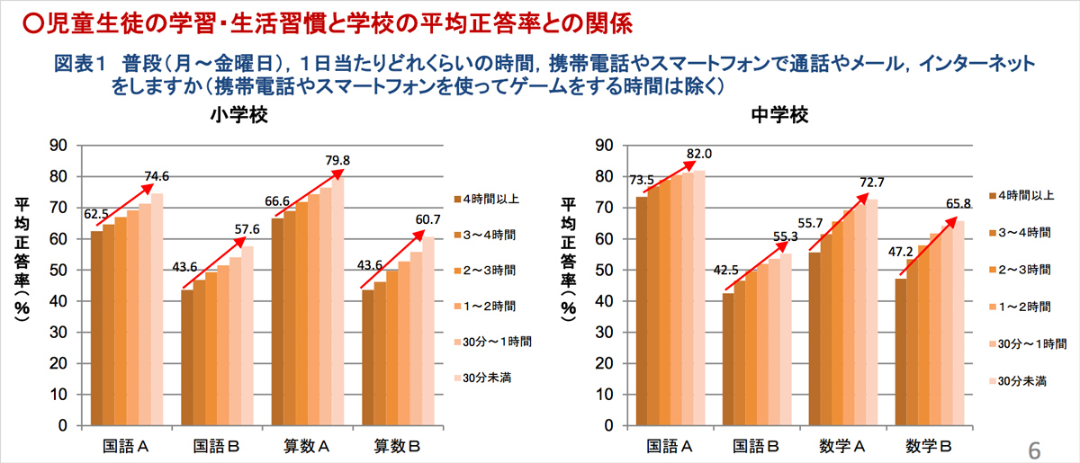 違う言い方をすれば「スマホをいじってる時間が短いから勉強するようになる」のか、「勉強してるからスマホをいじってる時間が短い」のかはわからないという。どうなんでしょうね。