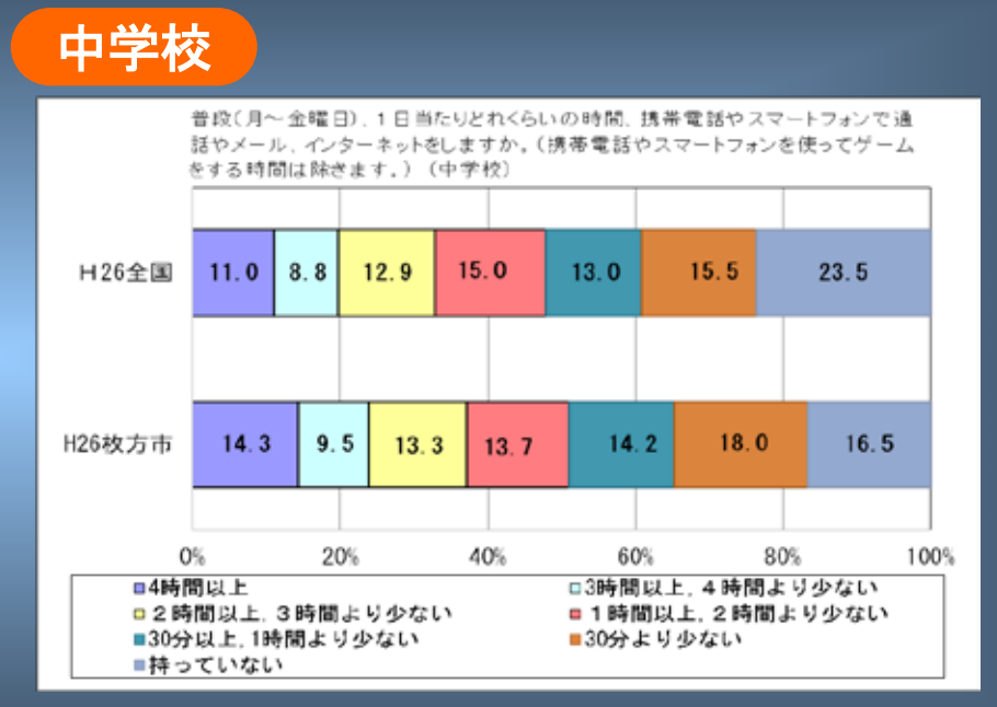 ゲームを除いて携帯・スマホをいじってる時間のグラフ(中学校)です。