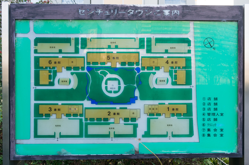 このセンチュリータウンの地図でいうと右下にある1番館の1と記載された位置にあります。