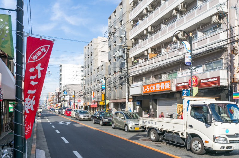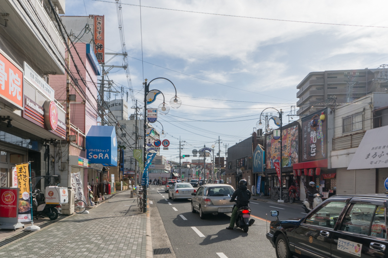 こちら側には近くに8月にオープンした「リサイクルショップ SoRA」やたこ焼き屋「龍たこ」などがあり、まっすぐいくと宮之阪駅の方へ。