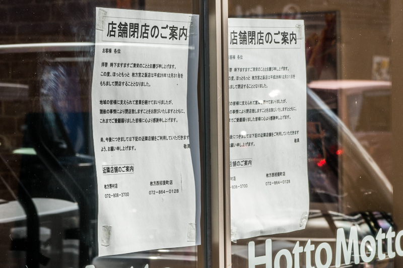 店先に貼られていた店舗閉店のご案内。12月31日で閉店とのことです。