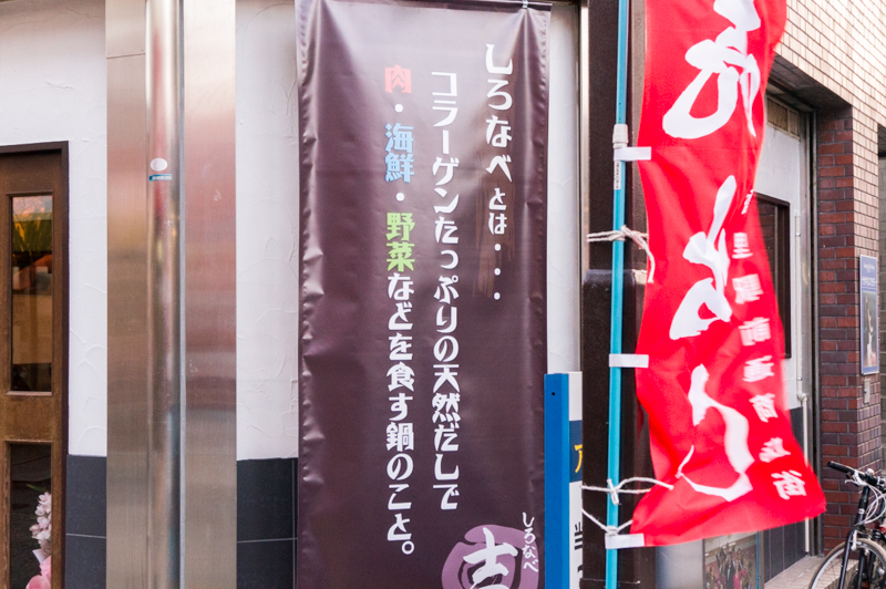 「しろなべとは…コラーゲンたっぷりの天然だしで肉・海鮮・野菜などを食す鍋のこと。」との記載。