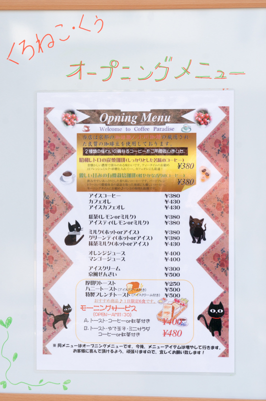 オープニングメニュー。今後増やしていくとのこと。こちらにも黒猫がいますね。