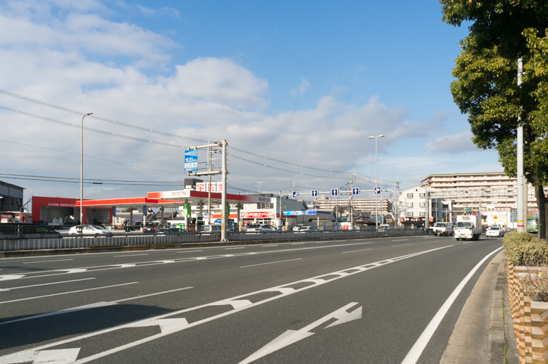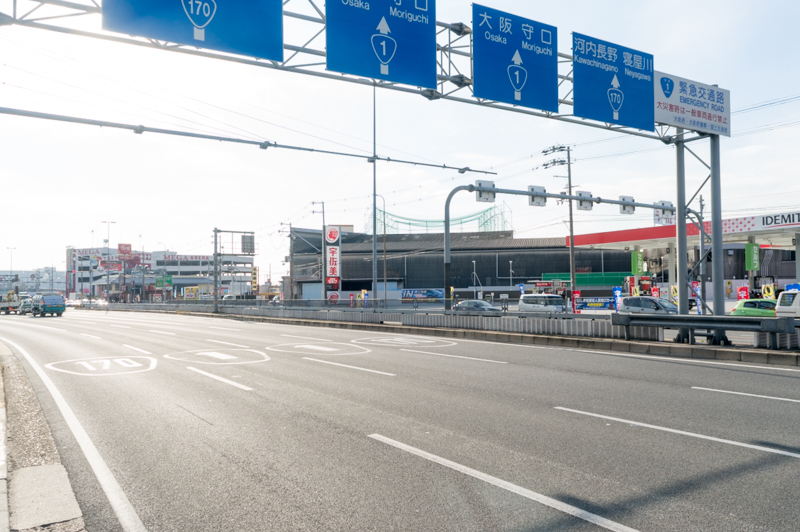 京都方面には2月にオープンしたシビカラ屋ロッキーや信長書店などがあり、その先で国道1号線と高槻方面へ行く国道170号線に分岐しています。