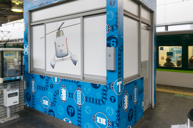 今回のイベントでは各駅ごとにきかんしゃトーマスのキャラクターが設定されていて、今回見てきた枚方市駅のキャラは「ハロルド&トップハム・ハット卿」 でした。ヘリコプターと人です。(キャラについての詳しい説明はコチラ)
