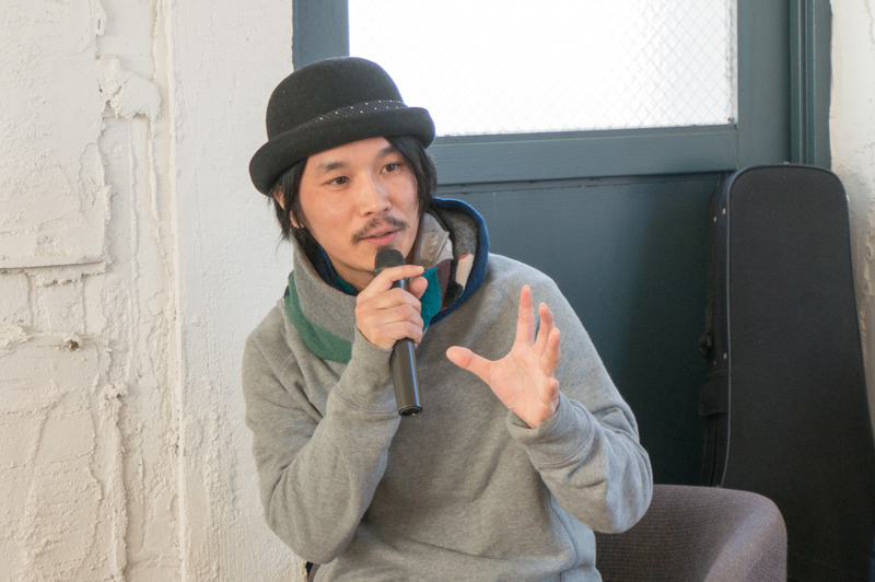 まずお話を聞かせてくれたのが大阪発のロックバンド plane のボーカル・ギターを担当されているキクチユウスケさん。ミュージシャンとして活動されているだけではなく、お店のプロデュースやデザイン関係のお仕事もされているそうです。