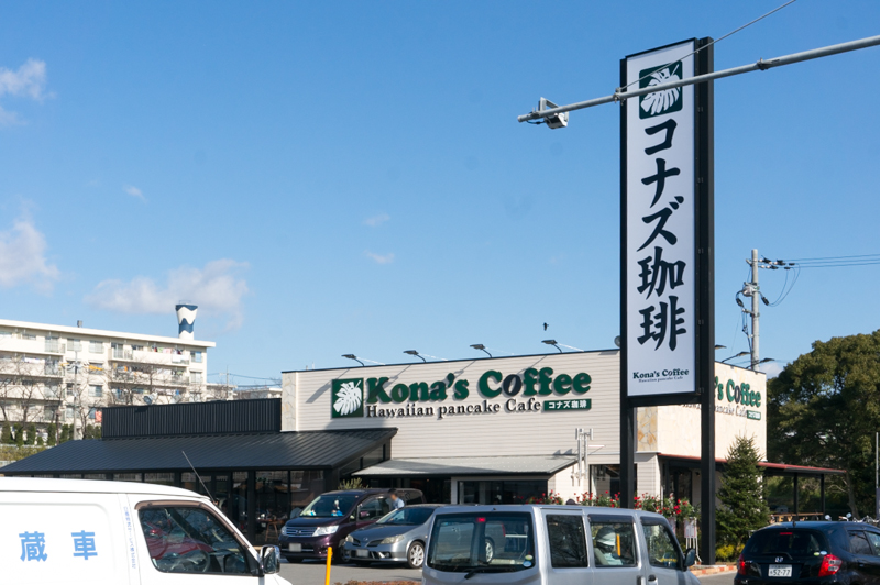 府道18号ぞい寝屋川に「コナズ珈琲」ってハワイアンパンケーキカフェがオープンしてる。治水緑地の向かい