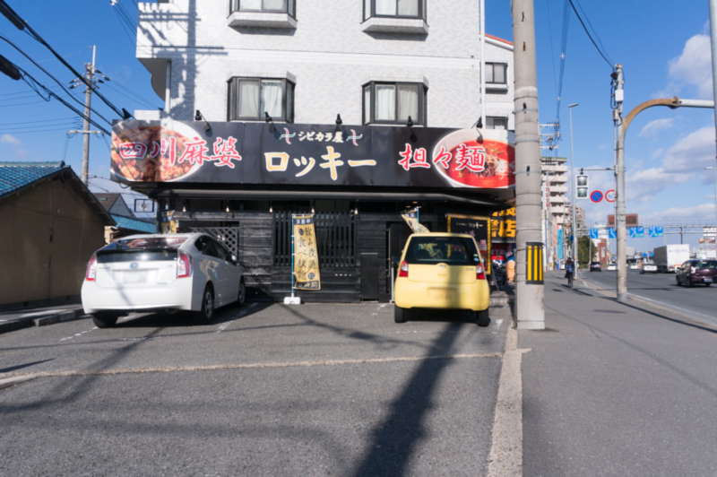 1号線を渡り、シビカラ屋ロッキー(食べログはこちら)を右手に見ながら進みます。