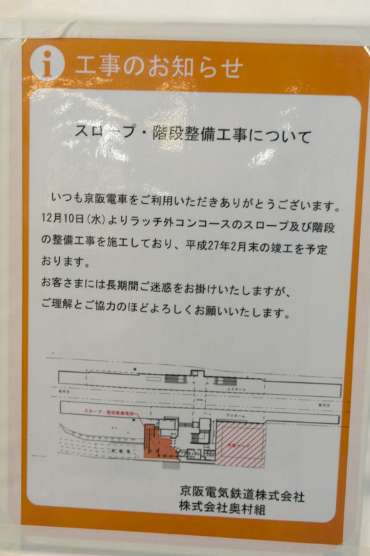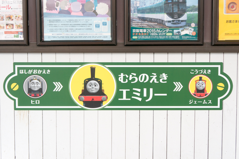 京阪電車「きかんしゃトーマスとなかまたち2015」村野(エミリー)編。バリアフリー化工事の様子も