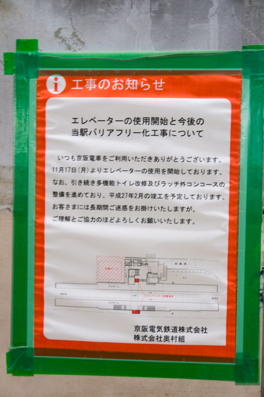 続きましてエレベーター工事の張り紙。11月17日より既にエレベーターは使用開始されています。他にも多機能トイレの整備も進めているそうです。