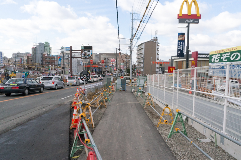 いよいよ道路が完成まで3ヶ月ほどになったというところですが、最終的に下りの車線が信号付近は2車線になるとかでしょうか。歩道の道幅が狭いイメージがありますが、そのあたりがどうなるのとかも気になるところですね。