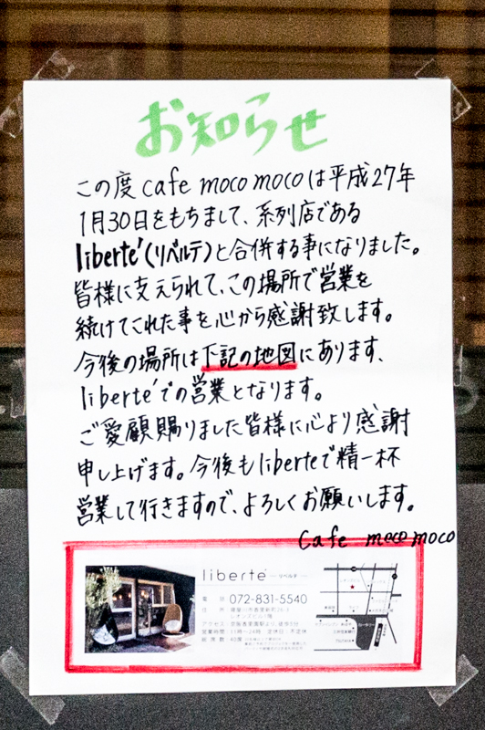 [閉] moco moco[パンケーキ店](香里園→開店記事、張り紙、その2)