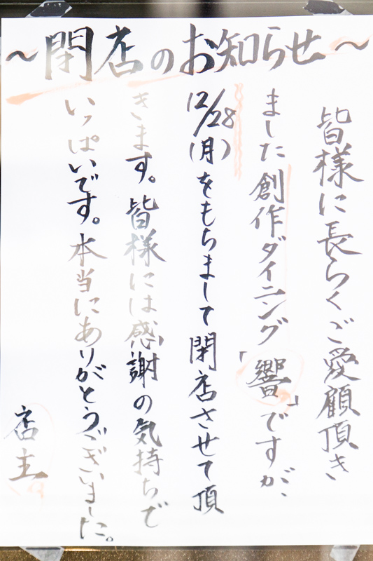 [閉] 創作DINING響(上島町 →張り紙)