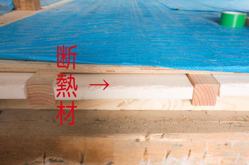 こちらは玄関で床の断面なんですが、断熱材を追加しているのが見えます〜!