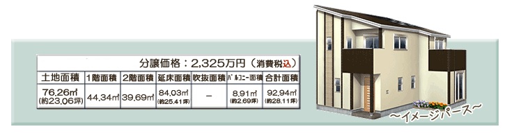 | 販売価格 | 2,325万円(消費税込・外構費別途) |