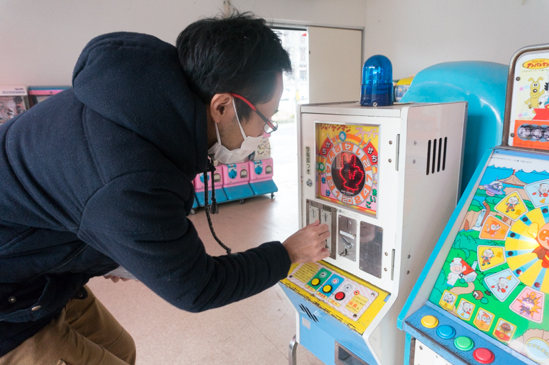 懐かしのゲームが並ぶビックサン内のゲームセンターで、これまた懐かしじゃんけんゲームをする男・・・。
