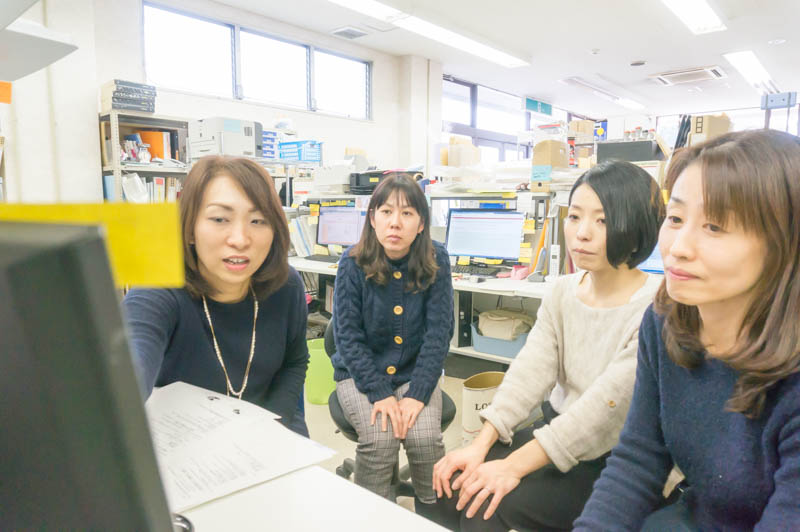 社内のあちこちで女性スタッフの皆さんが真剣にミーティングをされていました。
