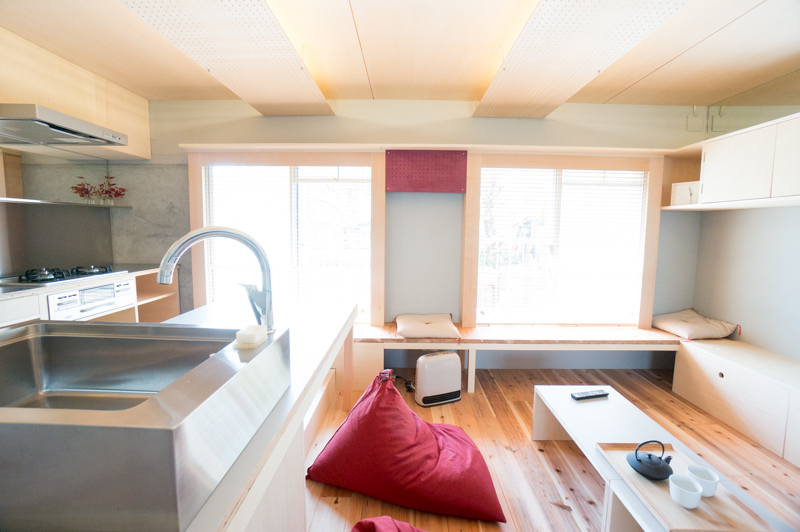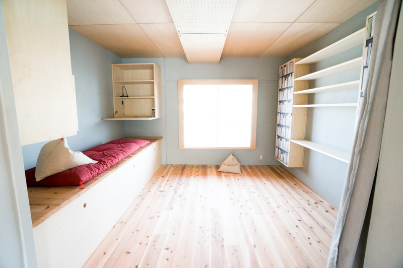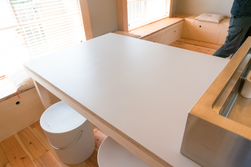 前の写真にあるテーブルは窓際のベンチ下に収納できます。お部屋が一気に広々しました