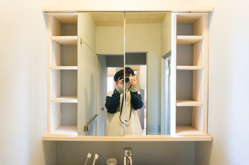 ちなみにこの鏡を開けると食器棚が!!