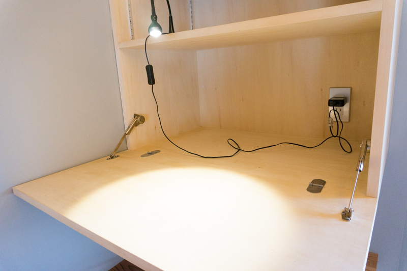 収納をパカっと開けると、こんなデスクに早変わり!!