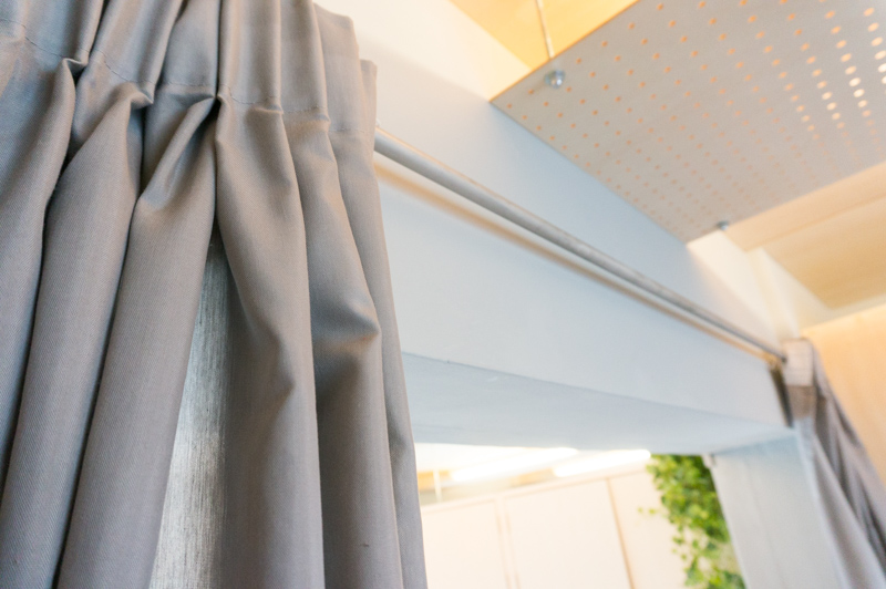リビングと洋室の間はこのようにカーテンレールがあるので、このように寝ている家族がいたらそーっと閉めましょう!!