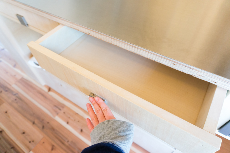 プッシュすると開く引き出し。