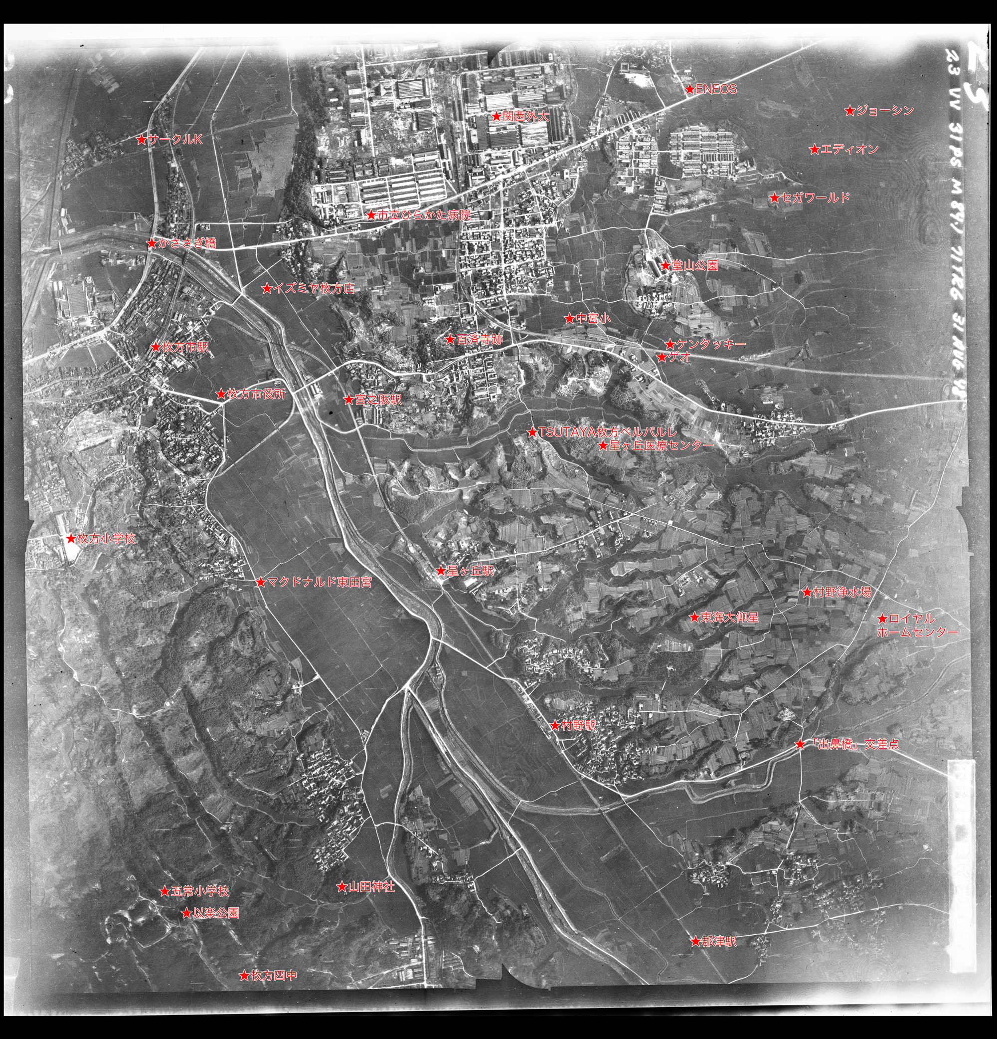 最近アップしたイズミヤ周辺の古い航空写真やイズミヤオープン時の写真につづき、1948年(昭和23年)というさらに古い年代の枚方市の航空写真のデータをいただきました。