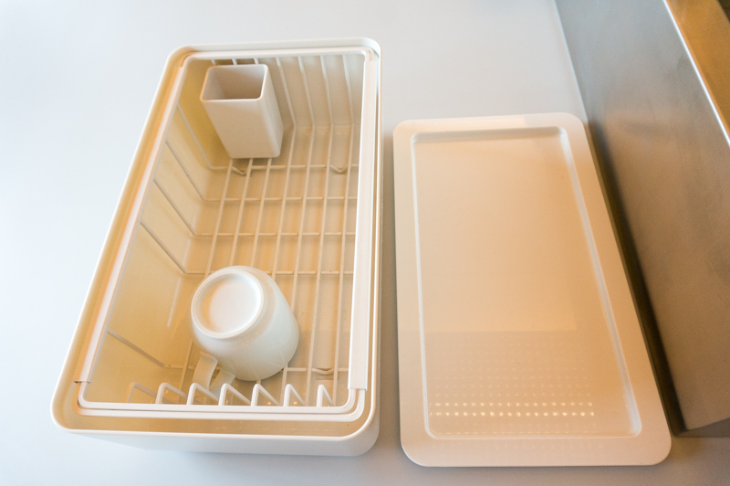 こちらも園尾さんセレクトのぴったりサイズでシンクにおさまります。食器を洗ったらすぐ水切りかごへ直行〜