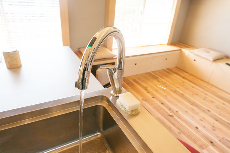 洗剤で泡だらけの手でもササッと水を出すことができますよー