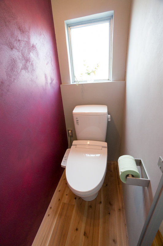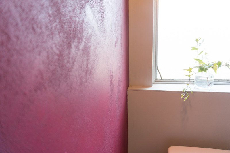 今までの団地のトイレにはありえない色、そして窓からの光が当たると柔らかな陰影で見る角度にによって様々な表情が見えます。
