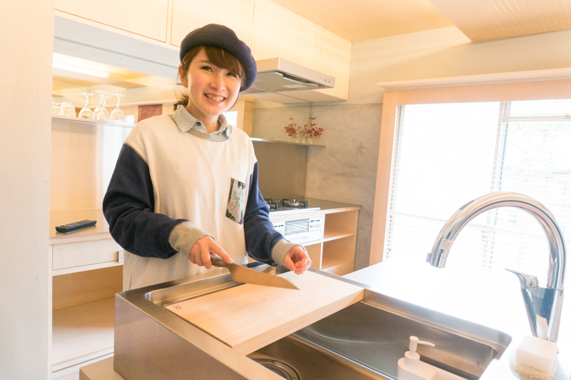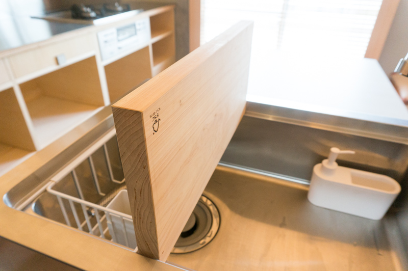 そしてこのシンク、回りの溝にぴったりなまな板を置くと調理台替わりに!