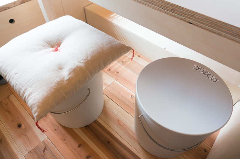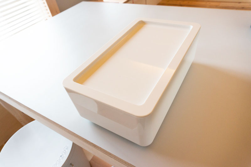 テーブル下を覗いてみると、白いバケツのようなものが2つ・・・